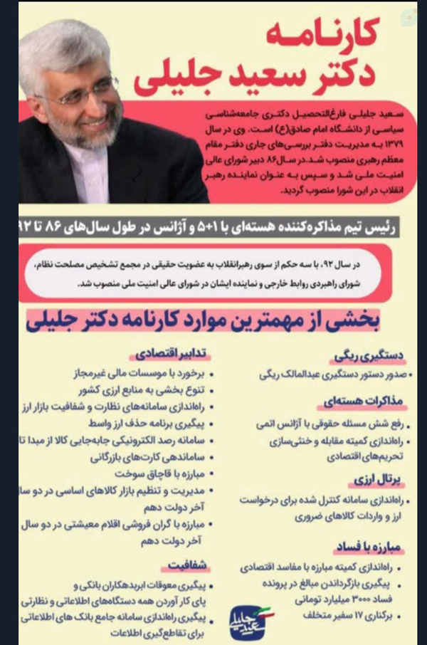 @Maryam902120914811 June 2025Replying to and 40 othersما دنبال کسی هستیم که دستش به فساد آلوده نباشه. تقوای کلام ورفتار رو باهم داشته باشه. مرفه بی درد نباشه و خانواده اش هم نازپرورده دارای ژن برتر نباشند. سبک زندگی اسلامی رو به سبک زندگی غربی ترجیح بده و بجای شعار ؛ در عمل توانمندیشو ثابت کرده باشه. این مصادیق رو در دکترجلیلی دیدیم. ملاک شما چیه؟!