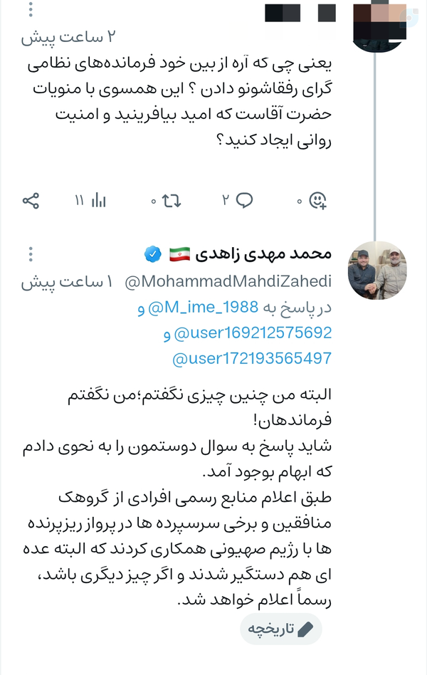 یک سوال و جواب سبب ابهام شد.اول تشکر ویژه بابت حسن توجه بزرگواران که تذکر دادند و اما چند نکته:ـ در همه حال و خصوصا الان که در شرایط جنگی هستیم، اطلاعات را از منابع موثق رسمی دریافت کنید.ـ از تحلیل های حزبی خودداری کنید که الان وقتش نیست و اتحاد مهمترین چیز است.ـ اگر ها و اما های مسائل گذشته