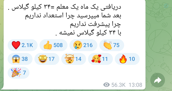 واقعا حرف درستیه.اما تو خودت اقتصاددانی علی، اگه حقوق معلم میشد به اندازه ۳۴۰ کیلو گیلاس، قیمت گیلاس به علت تقاضای زیاد ۱۰ برابر رشد میکرد و دوباره حقوق معلم برابر میشد با ۳۴ کیلو گیلاس.البته با در نظر گرفتن میزان تقاضای استاندارد، رشد قیمت گیراس کمتر خواهد بود.