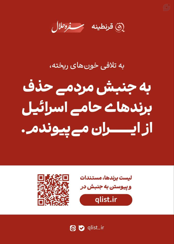 @Karim12322 July 2025Replying toحواست باشه کالایی که میخری قرنطینه نباشه!• جنبش مستند و مردمی شناخت برندهای حامی اسرائیل در ایران •👇👇👇وبسایت : qlist.irhttps://eitaa.com/qlist_ireitaa.comایتا - قرنطینه