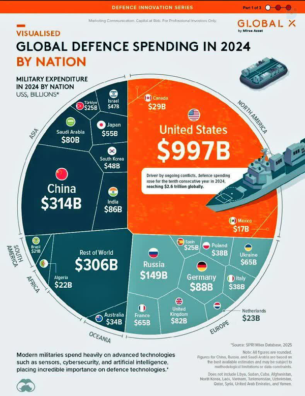 ۹۹۷ میلیارد دلار خرج ارتش خودش کرده اونوقت ما آدمایی در داخل داریم میگن آمریکا دنبال صلحه بریم باهاش