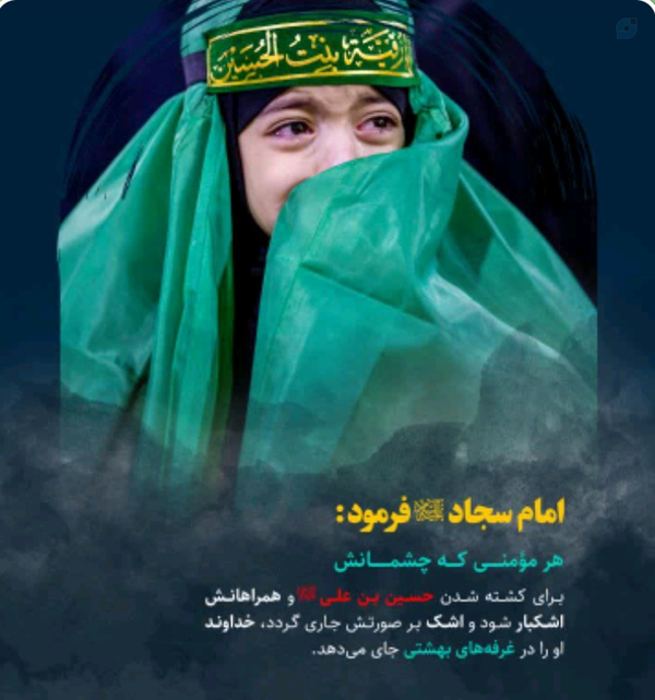 هر مؤمنی که چشمانش برای کشته شدن حسین بن علی علیه السلام و همراهانش اشکبار شود و اشک بر صورتش جاری گردد، خداوند او را در غرفه های بهشتی جای می دهد.