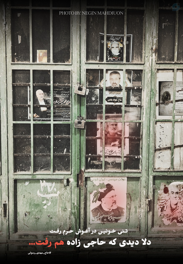 فریم دوم #بازار_کهنه_قمچه تصویر غریبی... #پلاک۲۷۰درِ قدیمی که سالهاست باز نشده.از بالا شروع کردم؛ تجوهم به تصویر امام خمینی جلب شد.بین آگهیهای کج و کوله و قفلهای زنگزده، یک دفعه چشمم افتاد به تصویر فرمانده دلها، #شهید_حاجیزاده… پایین تر، عکس شهید آیتالله #رئیسی، خادم بیادعا