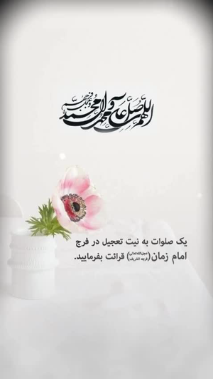 بِسم اللهِ الرَّحمنِ الرَّحیم*۞اَللّهُمَّ۞*۞کُنْ لِوَلِیِّکَ۞*۞الْحُجَّةِ بْنِ الْحَسَنِ۞*۞صَلَواتُکَ عَلَیْهِ وَعَلی آبائِهِ۞*۞فی هذِهِ السّاعَه وَفی کُلِّ ساعة۞*۞وَلِیّاًوَحافِظاً وَقائِداً وَناصِراًوَدَلیلاً۞*۞وَعَیْناً حَتّی تُسْکِنَهُ أَرْضَکَ۞*۞طَوْعاً وَتُمَتِّعَهُ فیها۞*۞طَویلا۞