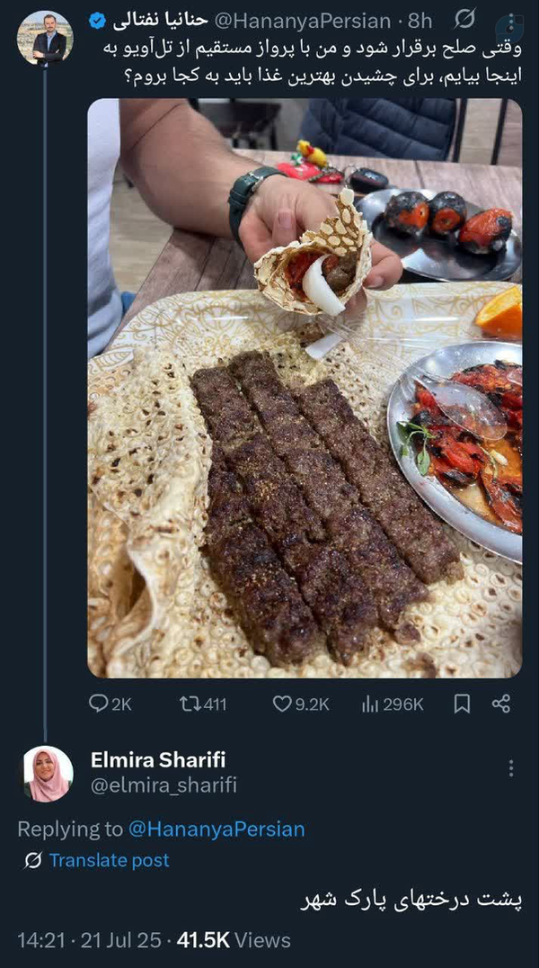 کامنت المیرا شریفی به شیرینکاری یک صهیونیست