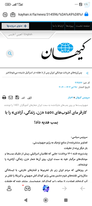 عباس پیرِ نَطّاق@Pirnattagh • 17 July 2025Replying to @Pasdaranسرمقاله امروز کیهان در این خصوص:https://kayhan.ir/001Jq8kayhan.irکارفرمای آشوبهای 1401«زن، زندگی، آزادی» را با بمب هدیه داد!