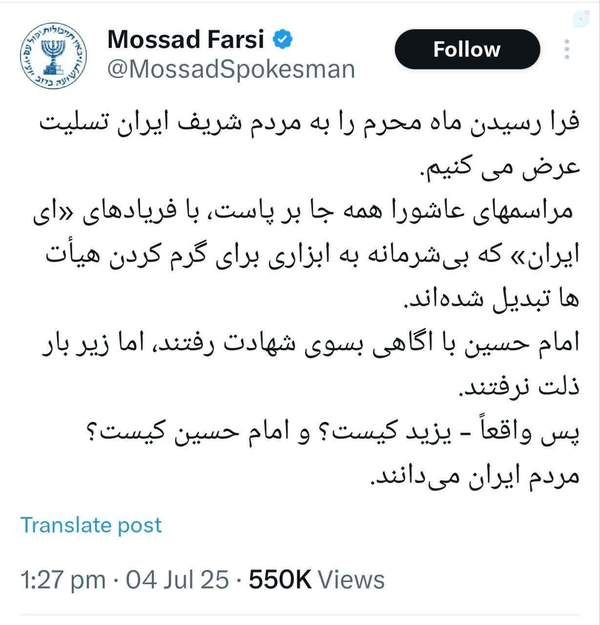 از عجایب روزگار این جهودا هستن که نه تنها خیال کردهن ما هیچی از داستان کربلا یاد نگرفتیم؛ بلکه حتی فکر میکنن شعورمون در حد شنگول و منگول هم نیست که تازگیا آیفون تصویری نصب کردهن...بله، علی اصغرهای غزه شهادت میدن که خیمهٔ یزید و امام حسین هر کدوم کجاست!!!#عاشورا#اسرائیل#یزید_زمانهات_را_بشناس