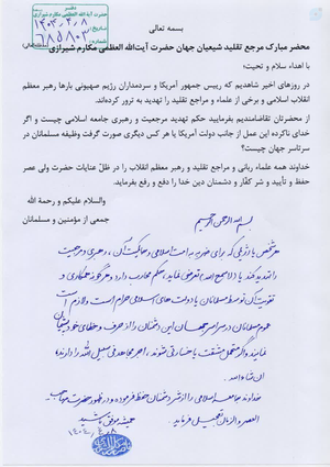 اهانت به شخص آیتالله خامنهای(دامت برکاته) اهانت به اصل اسلام است.