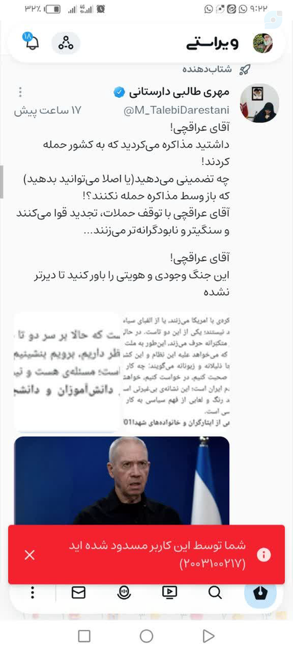 خانم @M_TalebiDarestaniهرقدر میخواهید برای شتابدهنده خرج کنید، شما که الحمدلله وضعتان خوب است که اکثر اوقات در شتابدهنده فعّالید؛اما حواستان باشد...دیگر آن زمان گذشت که بتوانید مسئولان ارشد لشکری و کشوری را با قلم تندتان تخریب کنید!خوب میدانم و میدانید که حجم لایکها بخاطر مسدودسازی مخالفان است!
