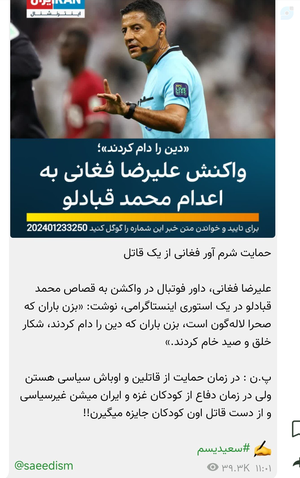 فغانی باخت هم در زمین هم در انسانیت.چقدر یک انسان میتواند پست باشد که با قاتل مردم بیدفاع و آمر حمله به کشور مادریاش، لبخند بزند، عکس یادگاری بگیرد و با افتخار لایک نشان دهد. و این کار یعنی تایید کار ترامپ.مدال بیغیرتی و بیوطنی مبارکش باد.اما یادتان باشد در کربلا بی طرفان بی شرفانند.