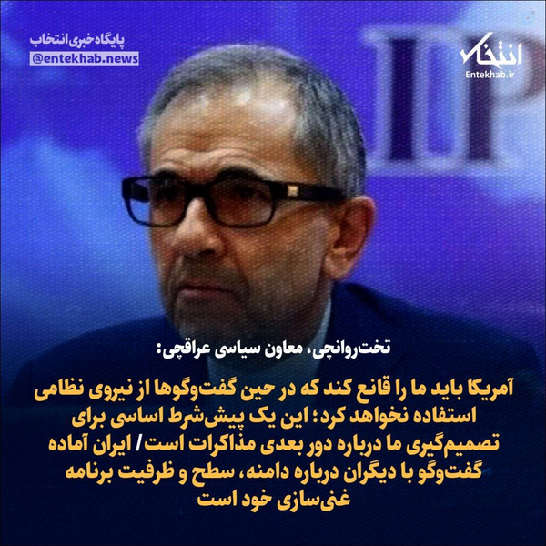 🔻تخت روانچی:آمریکا باید ما را قانع کند که در حین مذاکرات از نیروی نظامی استفاده نخواهد کرد❗🔻 قطعاً جناب معاون وزیر خارجه قصد طعنه و کنایه به عملیات فریب آمریکا داشتهاندولی برادر عزیز، زبان فارسی ظرایفی دارد که فقط فارسی زبانان متوجه میشونداما بیگانگان از نوع سخن شما برداشت اظهار ضعف میکنند