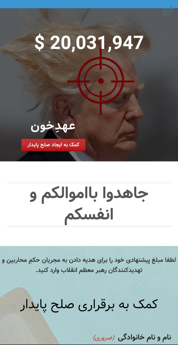 @Sadr14037 July 2025Replying to#پویش_جایزه_سر_محاربین 20 میلیون #دلاری شد...برای مشارکت در پویش #عهد_خون به وبگاه https://thaar.ir/ مراجعه و آن را به دوستان خود معرفی کنید.🩸