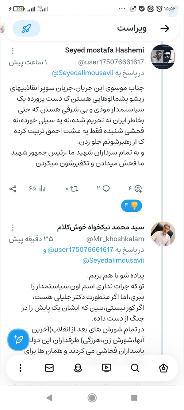 @Mr_khoshkalam9 July 2025Replying to andبه عمل کار برآید ،به سخندانی نیست.مدعی ولایت باید گوشش به دهان رهبرش باشد.آیا رئیس جمهور در مورد مذاکرات که رهبری فرمودند،غیر عاقلانه و غیر شرافتمندانه است توجه کرد؟؟شما مصداق نومن ببعض و نکفر ببعض هستید.همان کسی که چشم دیدنش را نداری،نماینده رهبری در ش.ع.امنیت ملی است.