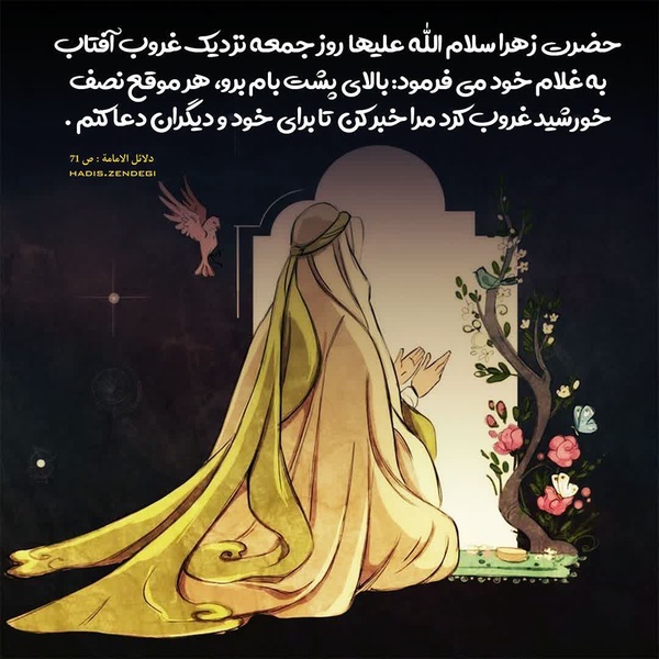 🔴 دعا برای فرج در غروب روز جمعه در ساعت استجابت دعا🔵 حضرت زهرا سلام الله علیها فرمودند:🌕 من از پیغمبر شنیدم که فرمودند در روز جمعه ساعتی است که هر کس آن را مراقبت کند و در آن لحظه دعا کند دعایش مستجاب میشود و آن زمانی است که نیمی از خورشید غروب کرده باشد.📚 معانی الاخبار ص ۳۹۹