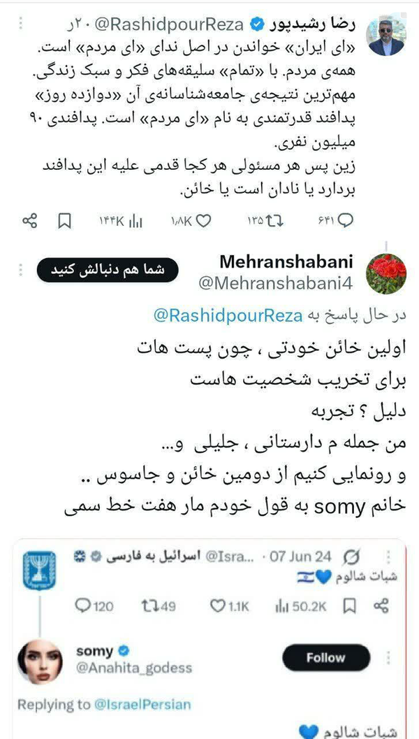 دوتا توییتهای خودتو نگاه بنداز ببین کی خائن اخه