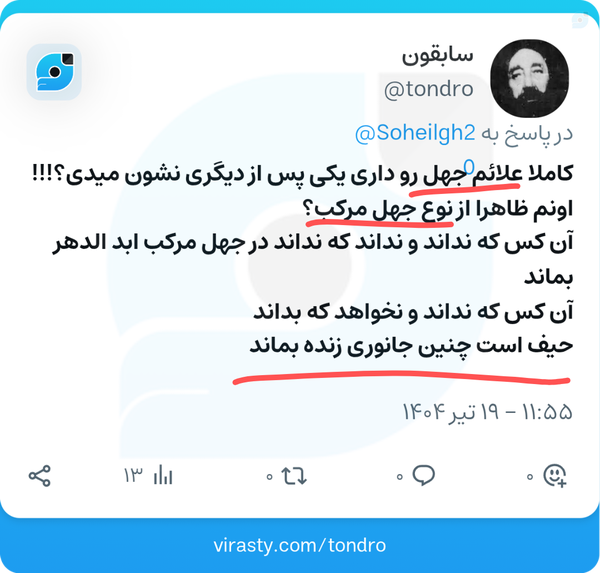 سابقون@tondro • 13 July 2025اراذل نمایی#گزارش @support