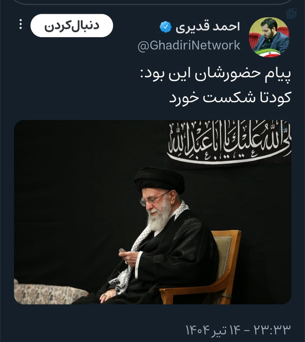 @Toofanowrang19 July 2025"از روی اطلاع دارم عرض میکنم که برنامه#نفوذ در کشور یک برنامه جدی استکبار است،برنامه جدی #آمریکاییها است؛ دارند دنبال میکنند که نفوذ کنند.اشتباه نشود! این نفوذ برای این نیست که از یک جایی #کودتا بشود؛ نه!میدانندکه در #ایراندر جمهوری اسلامی،با ساختی که جمهوری اسلامی دارد کودتا معنی ندارد!"