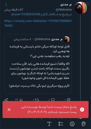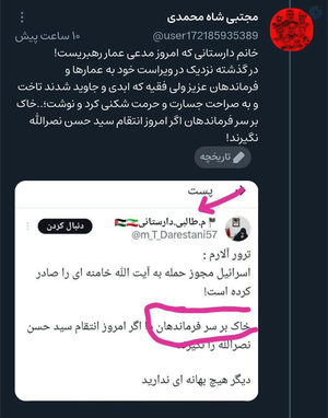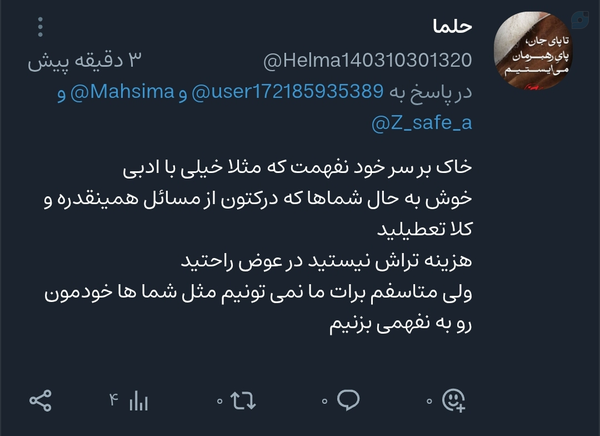 حرفی هم میشه پشت نقاب ولایتمداری قایم میشن..شما نکبتها نه دلسوز انقلابید،نه نگران امام خامنهای..یا احمقیدیا پادوخلاصبلاکشون نمیکنم بیان درفشانی کنند..بیاین کامنتهای تکراریتون رو کپی پیست کنید و بعد بلاکم کنید!لاناتیهای کنشگر مهوع!🤮