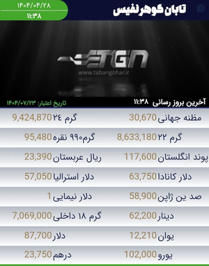 قیمت امروز #طلا #سکه #ارز🗓1404/4/26قیمت امروز یک گرم طلای ۱۸ عیار7/094/000گالری طلای زراستار بورس طلای بدون اجرت و کم اجرت#قیمت_طلا #پولطلا #تورم #اقتصاد #ایرانلطفاً #بازنشر بدید و برای اطلاع از آخرین محصولات به کانال ما بپیوندید https://eitaa.com/joinchat/1160446151Cd193039648eitaa.comایتا - Eitaa: Join Group Chat