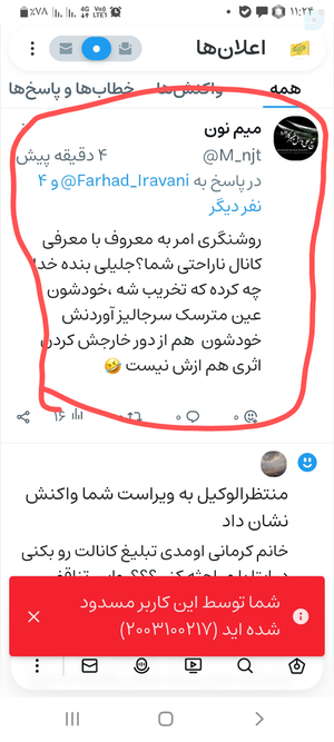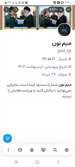 @shahid1205 July 2025Replying to and 29 othersمشکوک میزنه!! چونمثل سوپر انقلابیها نیست که دائم در حال تخریب مسوولان نظام و فرماندهان باشه واقعا مشکوک هست و باید گزارشش کنین و بگین یکی تو ویراستی هست اینکارها را نمیکنه خیلی مشکوک و عجیبه🤔