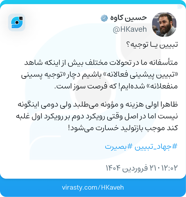 هم صلابت فرمانده کل قوا را در اولین پیام پس از حملات اسرائیل و ترور فرماندهان و دانشمندان دیدند، هم اندوه آشکار ایشان را پس از آتشبس خودسرانه؛ اما هنوز نفهمیدهاند، آتشبس تحمیلی، توطئه شبکه سیاسی موساد در کشور برای نجات اسرائیل بود که ناگهان پس از تغییر توازن در جنگ عملیاتی شد.