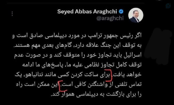 با توجه به موضع گیری برخی مسئولان در #جنگ تاریخی مان با یهودیان صهیون،نیاز هست که فعالان رسانه ای در شرایط انفصال دستگاه محاسباتی این افراد از عموم مردم انقلابی، آتش به اختیار عمل کنند و زبان گویای آرمان انقلاب باشند! یکی هم #عراقچی رو از برق بیرون بکشه
