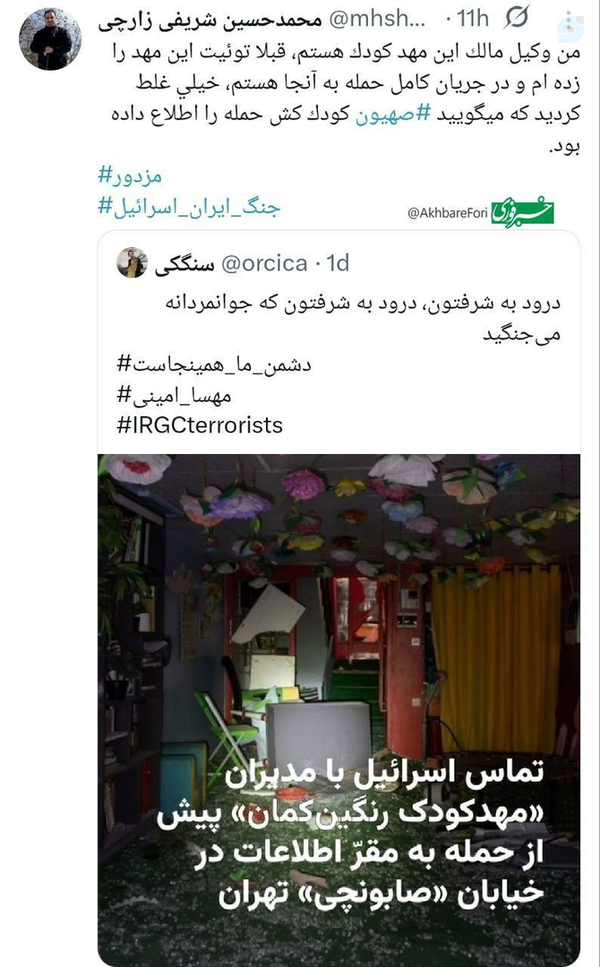 واکنش وکیل مهدکودکی که هدف تجاوز رژیم صهیونیستی قرار گرفت به ادعا اطلاع رسانی رژیم پیش از حمله