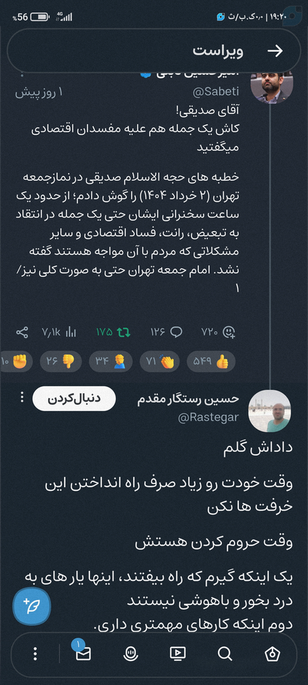 @Rastegar30 May 2025Replying toما نادون ها اومدیم بیرون، شما باهوش ها بمونید. پالرمو هم تصویب شد.چهار تا گزارش دولت برای شرکا بین المللیتون رو میده. دشمن با شریک تجاریتون میبندهتو یک روز همتون رو با هم منفجر میکنند.مثل حزب الله لبنانباهوش ها