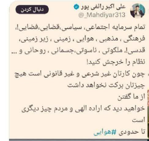 @yaali23610 July 2025Replying to andراستی داعش گفته به خراسان واصفهان ماچشم دارد!شما پیشنهادی برای پیشگیری یادفع خطر ندارید؟البته اگرنان به اندازه کافی ازجنگ ستادهای انتخاباتی سالهاپیش برداشته ومی خواهید یکبارهم مفیدبرای کشورزندگی کنید.