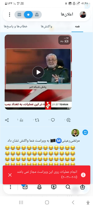حسین شلوغ@Sholwq3420 July 2025Replying to @huygenceاز صبح برای بچه های انقلابی منتقد همین برام نشون میده از وحید تا چندنفر دیگه هر کاری کردم نتونستم بهشون پیام بدم19643711342
