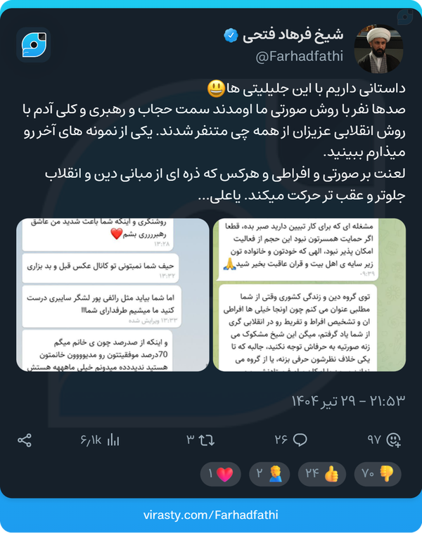 @Ta_abad_ba_velayat21 July 2025Replying to andموندم چه جوری رسید به جلیلیتی ها این جلیلی تی ها رو از کجاش درآورد فتحی نمونه بارزه مردخاله زنکه