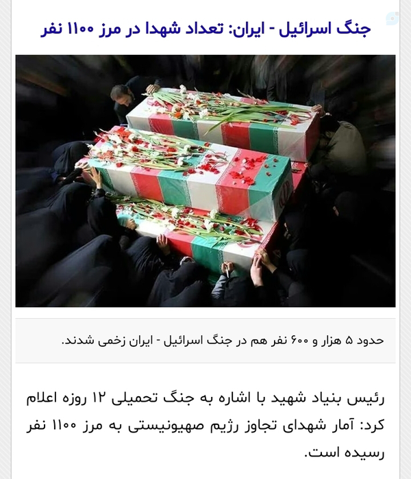 @Mejmar11 July 2025Replying to🔴 جناب میرتاج الدینی؛ تعداد گشته های صهیونیست فاسد چند نفر باشد خوب است؟ خوبه ۵۰۰ نفر باشد... ما بیش از ۱.۱۰۰ شهید عزیز از دست دادیم... در محاسبات بیشتر دقت کنیم... .