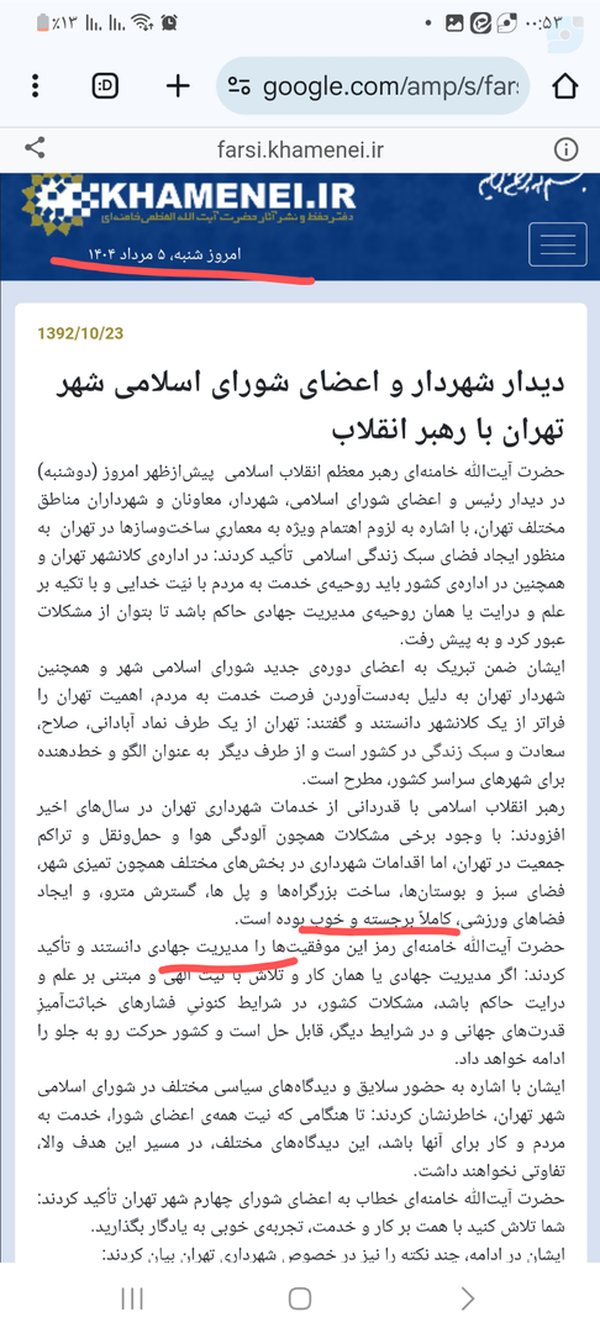 @mohammad_saleh138831 July 2025Replying to and 39 othersتعویض متن آقا توسط سایت خامنهای دات آی آر؟!