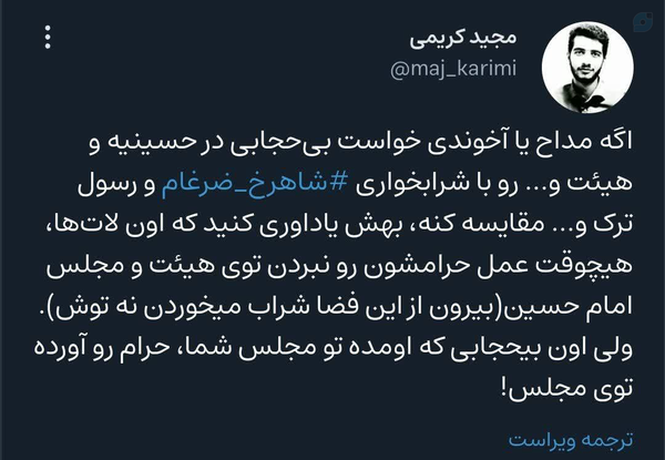 ❌اگه مداح یاآخوندی خواست بیحجابی در حسینیه,هیئت روباشرابخواری ضرغام ورسول ترک مقایسه کنه،بهش یادآوری کنیدکه اون لاتهاهیچوقت عمل حرامشون رونبردن توی مجلس امام حسین عبیرون ازاین فضاشراب میخوردن،نه توش!ولی اون بیحجابی که اومده تومجلس شماحرام روآورده توی مجلسهیات،جای گناهکارهست،اما درحالگناه،نه!