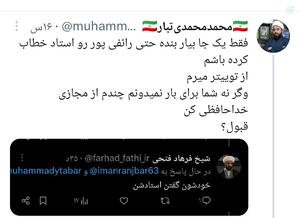 کسی که رکورد دار خداحافظی و سلام مجدد در فضاهای مختلف مجازیه به یکی دیگه پیله کرده. بابا اعتماد به نفس.