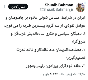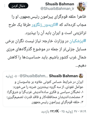 سارا@Sara385a28 July 2025Replying to @A_raefipourعقل و انصاف حکممی کند اول از صحت چیزی لااقل ظن قطعی پیدا کنید بعد هشدار بدهید، نه اینکه به استناد یک توییت متفرقه #جوسازی کنید!حضرت سواد رسانه!92038263