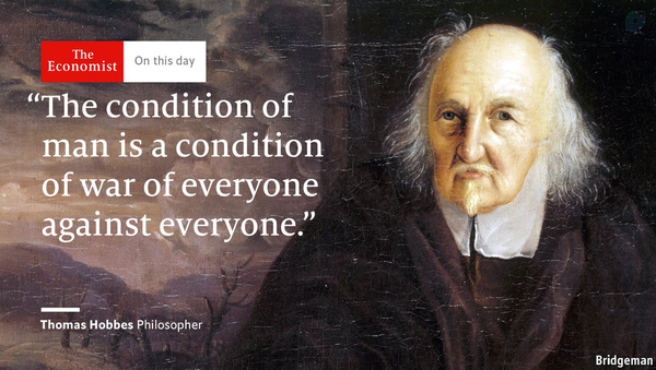 توماس هابز در فصل ۱۱ لویاتان جملهای دارد: "انسانها به طور طبیعی میل دائمی و بیقرار برای قدرت دارند که تنها با مرگ متوقف میشود، قدرت زنجیرهای است که پایان ندارد."انسانها ذاتا هر آنچه که دارند را، برای بهدست آوردن بیشتر به کار میگیرند، نه لزوما به خاطر طمعکاری یا افزونخواهی/۱