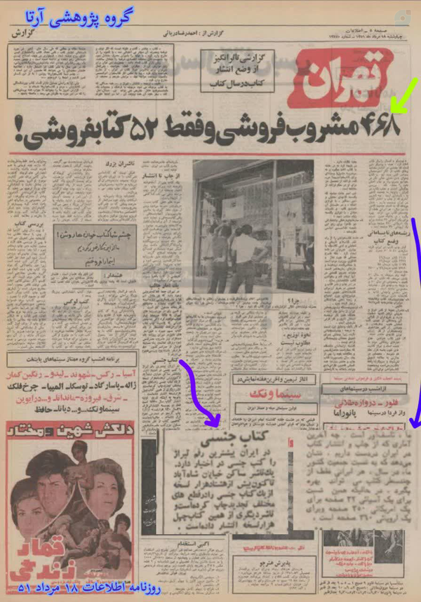 ➕در ایران بیشترین رقم تیراژ را کتاب های جنسی در اختیار دارند📚روزنامه اطلاعات ۱۸ مراد ۵۱👈سواد و کتاب و اینچیزها که مهم نیست 👈مهم اینه ورزشگاه آزادی داشتیم و دلار ۷ تومن بود و روزی شش میلیون بشکه فروش نفت داشتیم و...