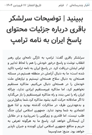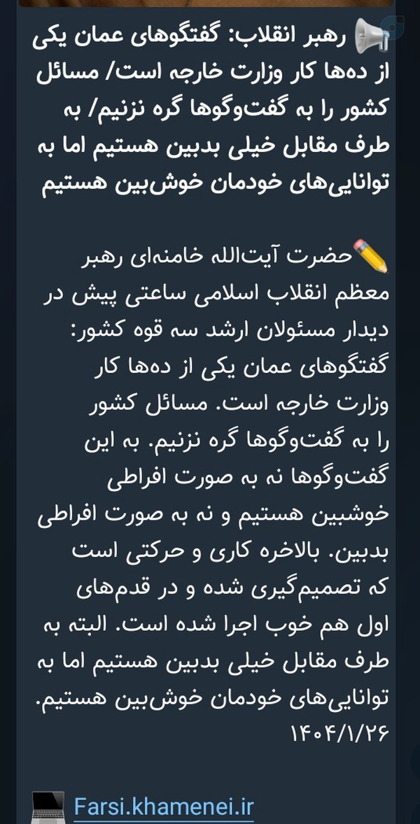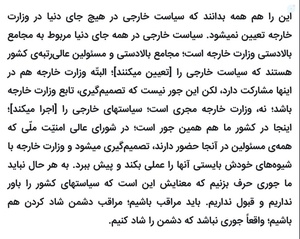 ۱.#سردار_باقری،در شعام بود،دیگه اینکه کسی حرف ایشون رو قبول نکنه باید به عقلش شک کرد چرا که حضرت آقا صریحا فرمود👇👇 که مسائل سیاست خارجه در وزارت خارجه تعیین نمیشودبلکه در شعام و توسط مسئولان بالادستی تعیین می شود و وزارت خارجه فقط مجری هست.حرف فلان نماینده که در شعام نبوده،تاییدنمیشهصحبت دارم...