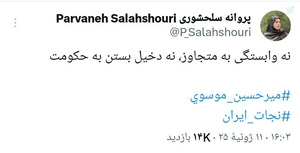 چراغ دوم رو هم پروانه سلحشوری روشن کرد آره آره بیاید برامون از انسجام ملی حرف بزنیدهر کی حرف زد با اینا مخالف وحدتن خفه شون کنید تحویل بگیرید حضرات