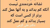 بسیار دانستن نشانه خردمندی و بزرگی نیست انکه کم بداند و به دانسته هایش عمل کند برتر از انی است که بسیار بداند و کم عمل کند دکتر علی کرمی موسس بنیاد ملی سبک زندگی سالم