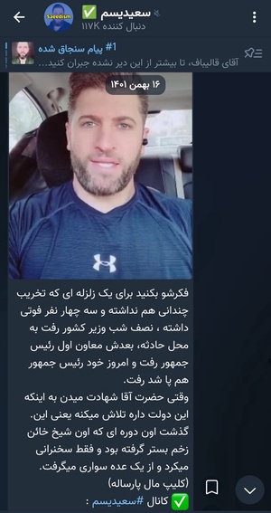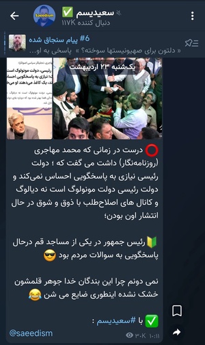 تمسخر شهید رئیسی توسط آخوند کراواتی 😔فرهاد فتحی:رئیسی مدیریت بلد نیست .رئیسی ساده است، فکر میکنه هر روز بره یه روستا مشکل حل میشه . کاش میموند در قوه قضائیه و نمیومد 😔پ.ن : همین آدم دم دمی مزاج و عروس هزار داماد الان داره از پزشکیانی دفاع میکنه که هرچی توهین کننده به شهید رئیسی هست و