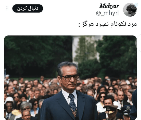 @DR_ABEDISARASIA25 دقیقه پیش🥸مرد نکونام نمیرد... 🎬کات. بسه بسه ... سه تا غلط داشت:❌اولا مرد نبید و نامرد بید✅❌ثانیا نکونام نه و منفور ابدی✅✅ثالثا ای که بَمُرد...👌اونم با خفت وخواری تو آوارگی و دربدری😂آخرشم که شد «جاوید شاه تو جهنم»😉