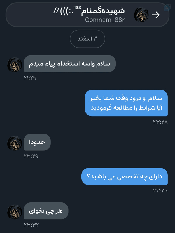 به نام خدااولین عضو متعهد و متخصص ما @Gomnam_88rاستخدام شدند ورود شما را به شرکت تبریک می گویمباشد که ترامپ بسوزد📢 استخدام🇨🇳شرکت کمونیست گستر خلق چین از افراد متخصص و متعهد دعوت به همکاری میکند.🔹 کارشناس اداری | IT | مدیر فروش | مترجم چینی | امور بینالملل✅ حقوق مناسب + فرصت پیشرفت📩 ارسال رزومه: به pv بنده مراجعه کنید⏰ تا تکمیل ظرفیت…Show more