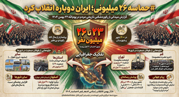 @babolsarkhabar11 February 2026🔹 حضور تاریخی مردم ایران در راهپیمایی ۲۲ بهمن ۱۴۰۴🔻 برآوردهای میدانی خبرنگاران فارس از حضور ۲۳ تا ۲۶ میلیون نفر در راهپیمایی ۲۲ بهمن ۱۴۰۴ در ۱۴۰۰ شهر و بخش کشور حکایت دارد.#ایران #ایران_قوی #دهه_فجر #الله #الله_اکبر #مرگ_بر_آمریکا #مرگ_بر_اسرائیل