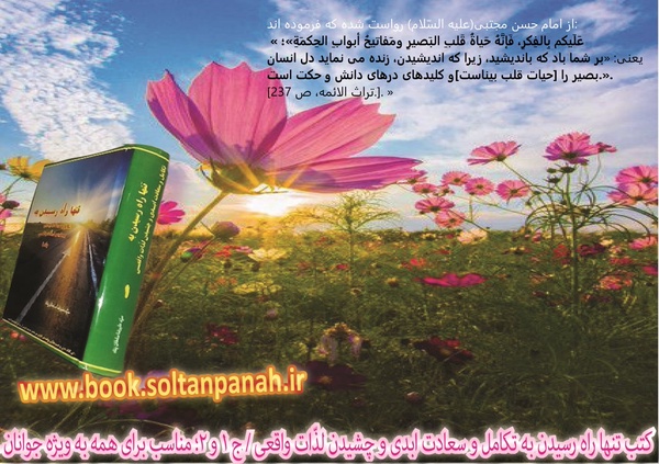 برمال وجمال خویشتن غرّه مشو کاکا/کان را به شبی برند و این را به تبینخستین نعمت ، نعمت آفرینش، و نخستی دستور، کُرنش و اطاعت در برابر خالق بی همتاست!«یااباصالح المهدی ادرکنی» سلام براهل معرفت- کتبی مفید وارزشمندبرای همه خردمندان إن شاءالله. آدرس وبلاگ مولف گرامیشان:(book-soltanpanah.blogfa.com)
