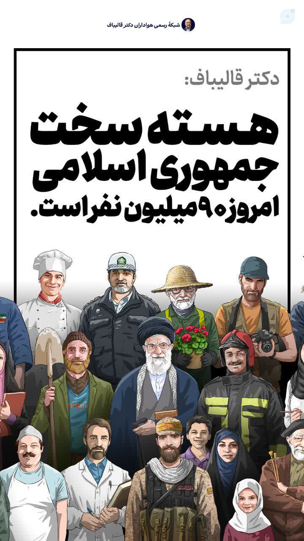 حال خراب این روزهای قالیباف دلیل بر این نیست که کم کاری وقصور قوه مقننه ندید گرفته شودایران همدل به دعای حضرت صاحب الامر وخون شهیدان عاشق رهبری آبیاری میشودنه حرف و صندلی قدرتمردم ایران اسلامی همیشه وهمه جا پای کار انقلاب هستن حتی نوجوانان بسیجی دهه ۸۰ ونودی