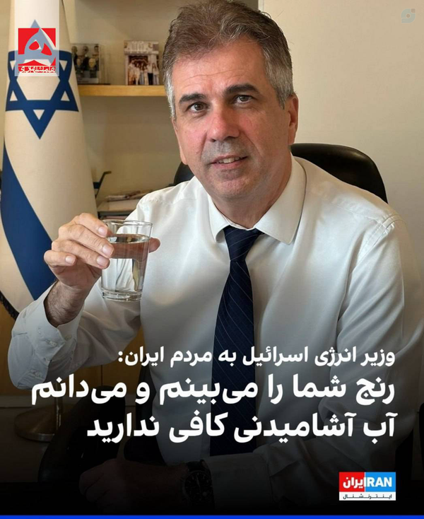 در حالی که آب و غذا را بر روی مردم غزه بستند و مردم درحال قتل عام دسته جمعی هستند وزیر انرژی اسرائیل در مورد بحران آب با مردم ایران همدلی میکند!!