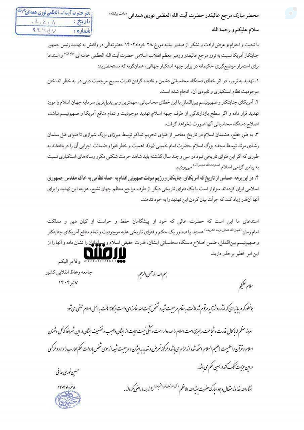 حکم تاریخی آیتالله نوری همدانی صادر شد: