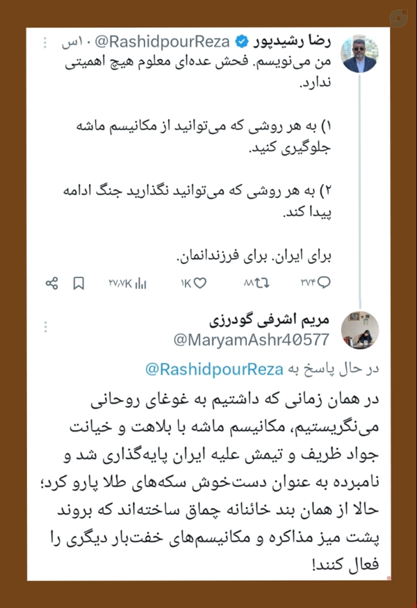 مکانیسم ماشه نه یک اشتباه دیپلماتیک که نقطه عمدی تسلیم در برابر امپریالیسم بود امروز همین دلقک و جریان های وابسته با پوشش دیپلماسی تعاملی میخوان بازی تحریم و تحقیر رو تکرار کنن راه نجات نه در مذاکره بلکه جلادان ک در تقویت محور مقاومت و خوداتکایه هرگونه بازگشت ب برجام گونها خیانت مضاعف به خون شهیدانه